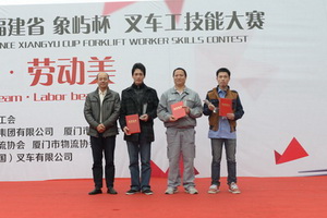 在热烈的气氛中,来自福建省内福州、南平、莆田、泉州、厦门、漳州各地的16家单位20支参赛队伍的41位叉车驾驶高手们以车代“手”,展开了一场力量与技术的比拼。本次大赛为省级总决赛,这些选手均是各地初赛和选拔赛的优胜者,获得过国家劳动部门颁发的中级叉车工(含)以上资格证书或具有3年及以上叉车从业经验。据悉,获得本次省级决赛个人赛第一名的选手,可按程序申报“福建省五一劳动奖章”;获得团队项目第一名的团队,可按程序申报“福建省工人先锋号”。