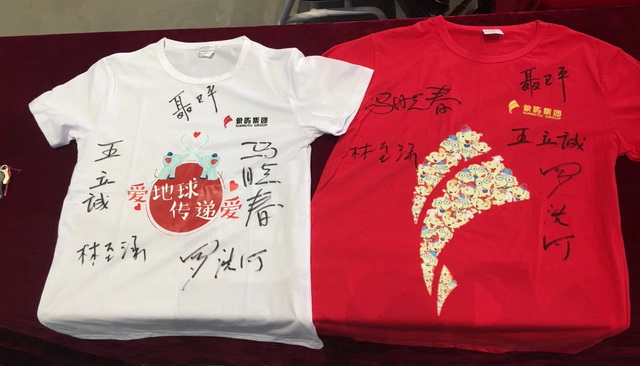 聂老等两岸世界冠军们,还在和记娱乐怡情博登录集团文化衫上留下珍贵签名。