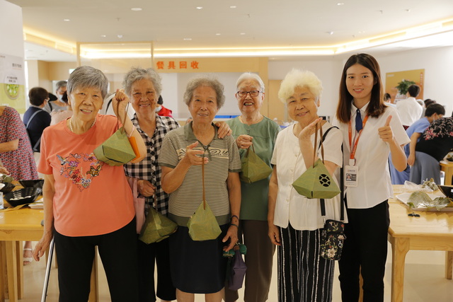 在和记娱乐怡情博登录慈爱老年养护中心,工作人员与入住长者们一起包粽子、话家常,送上美好祝福;在和记娱乐怡情博登录·龙山汇,工作人员不仅为商户送上暖心的粽子礼包,还为附近的居民和住户清洗木棉絮。