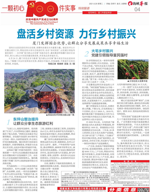 如今的大宅正加快形成品牌效应,成为“看得见山,望得见水,记得住乡愁”的都市田园典范和厦门新晋的旅游目的地,走出一条“三产联动”引领乡村振兴的光明道路。