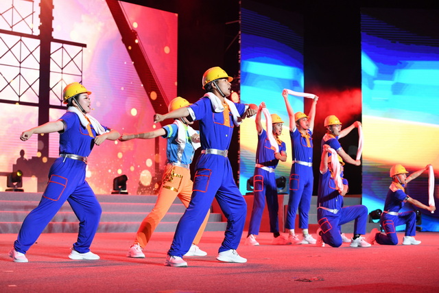 ▲和记娱乐怡情博登录海装带来歌舞《咱们工人有力量》