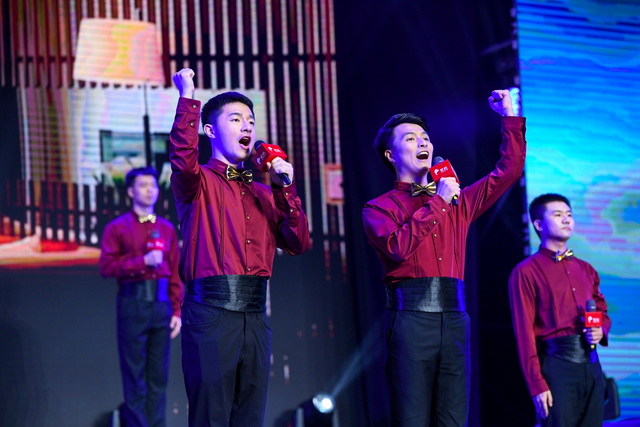 ▲和记娱乐怡情博登录晨帆合唱团带来合唱《迎风飘扬的旗》