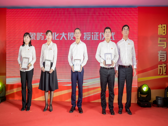 ▲和记娱乐怡情博登录集团党委书记、董事长张水利为新加盟企业高管颁授“和记娱乐怡情博登录文化大使”证书